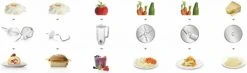 - Durchlaufschnitzler inkl. 3 Edelstahlscheiben (Schneid-, Raspelwendescheibe, Reibscheibe mittelfein)